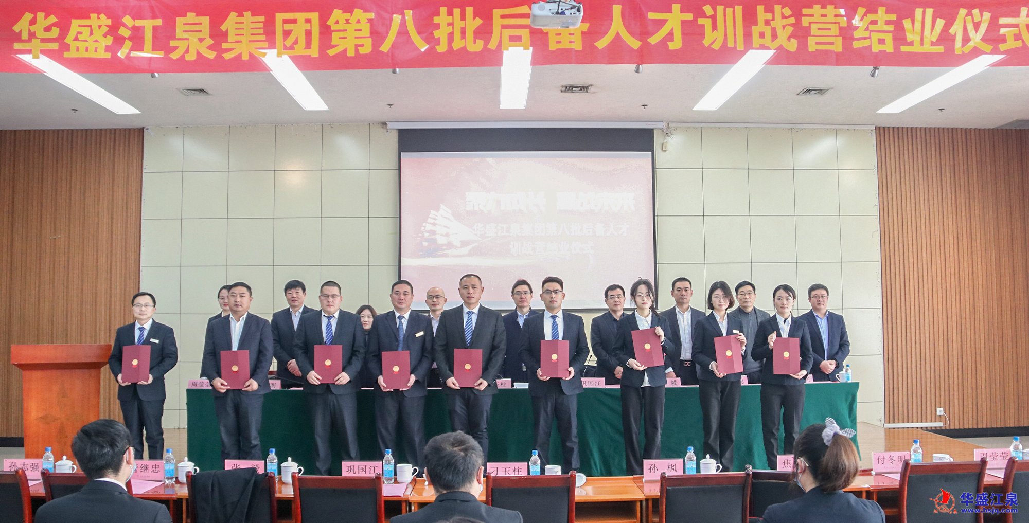 1月7日,華盛江泉集團(tuán)第八批后備人才訓(xùn)戰(zhàn)營(yíng)結(jié)業(yè)儀式在中盛公司會(huì)議室舉行。臨沂大學(xué)商學(xué)院院長(zhǎng)刁玉柱,臨沂大學(xué)商學(xué)院社會(huì)服務(wù)辦公室主任焦晶,羅莊區(qū)人力資源和社會(huì)保障局黨組書(shū)記、局長(zhǎng)鞏國(guó)江,羅莊區(qū)人力資源和社會(huì)保障局一級(jí)主任科員管繼忠,北京中人網(wǎng)信息咨詢(xún)股份有限公司董事長(zhǎng)孫楓,沈泉莊黨委書(shū)記、華盛江泉集團(tuán)常務(wù)副總經(jīng)理、財(cái)務(wù)總監(jiān)張毅,華盛江泉集團(tuán)黨委副書(shū)記、副董事長(zhǎng)付冬明,華盛江泉集團(tuán)總經(jīng)理助理、企管中心主任孫志強(qiáng)出席儀式。集團(tuán)第八批后備人才學(xué)員及導(dǎo)師、第七批后備人才代表參加儀式。集團(tuán)人力資源部部長(zhǎng)周瑩瑩主持儀式。