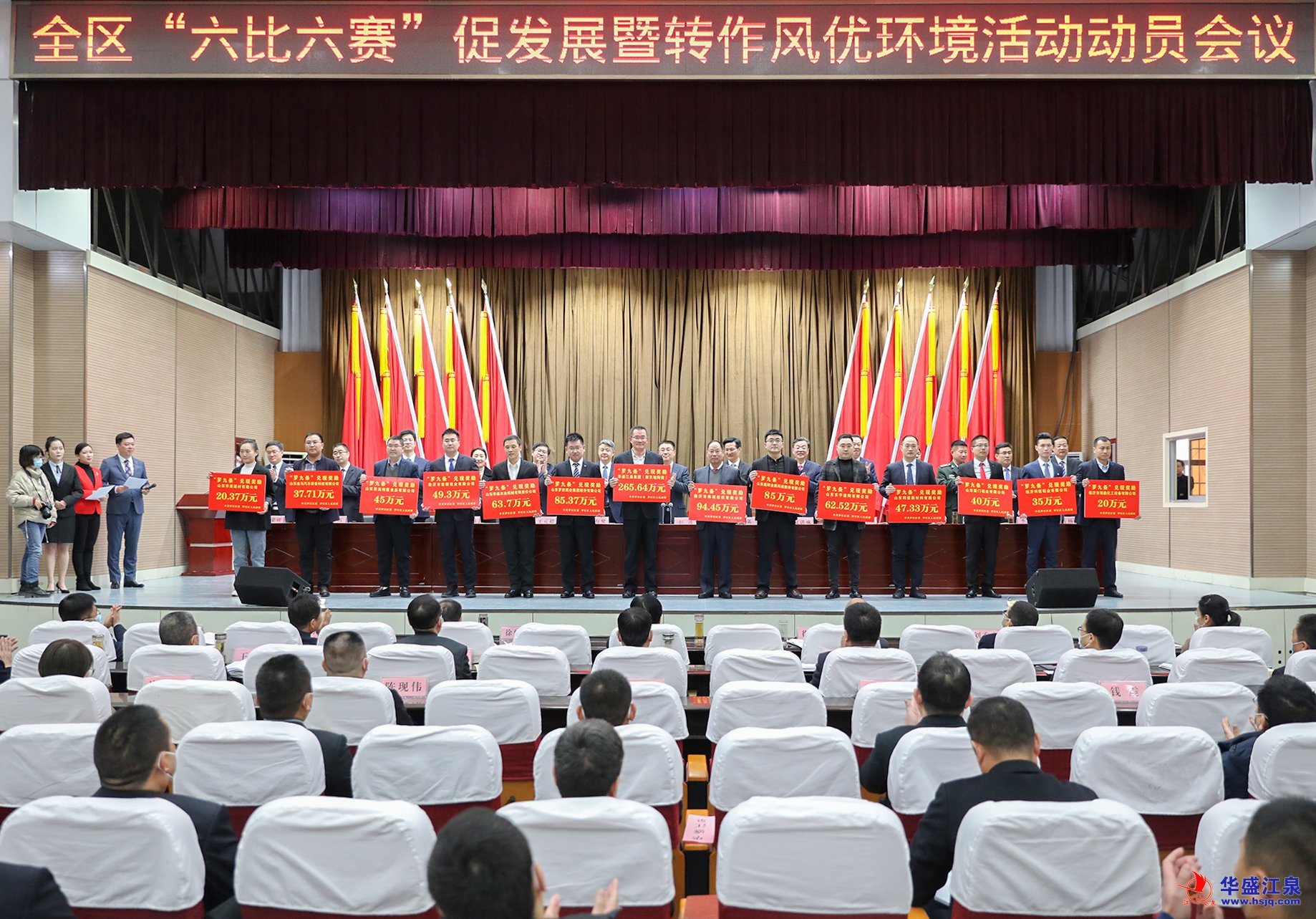 2月10日,羅莊區(qū)“六比六賽”促發(fā)展暨轉(zhuǎn)作風(fēng)優(yōu)環(huán)境活動(dòng)動(dòng)員會(huì)議召開(kāi),動(dòng)員全區(qū)上下牢固樹(shù)立“項(xiàng)目為王、企業(yè)至上”的理念,一切圍繞企業(yè)轉(zhuǎn),一切盯著項(xiàng)目干,努力跑出項(xiàng)目建設(shè)“加速度”,打造營(yíng)商環(huán)境“金招牌”,展現(xiàn)作風(fēng)建設(shè)“新氣象”,推動(dòng)全區(qū)經(jīng)濟(jì)社會(huì)高質(zhì)量發(fā)展。為表?yè)P(yáng)先進(jìn)、樹(shù)立典型,羅莊區(qū)委、區(qū)政府對(duì)2021年度具有特殊貢獻(xiàn)的先進(jìn)企業(yè)進(jìn)行了表彰。在此次受表彰的全區(qū)15家“2021年度龍榜企業(yè)”中,華盛江泉集團(tuán)榮登榜首。沈泉莊黨委書(shū)記、華盛江泉集團(tuán)常務(wù)副總經(jīng)理、財(cái)務(wù)總監(jiān)張毅參加動(dòng)員會(huì)議并上臺(tái)領(lǐng)獎(jiǎng)。